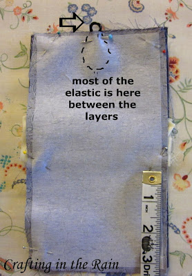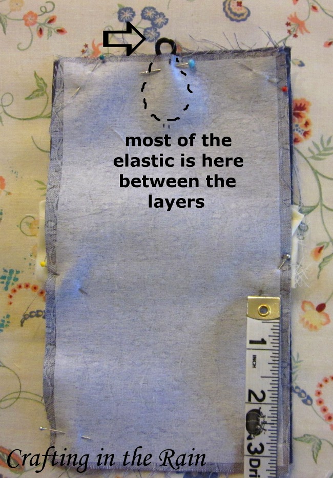 - pin hair elastic to the top of the outer fabric so that some sticks to the inside (right side)