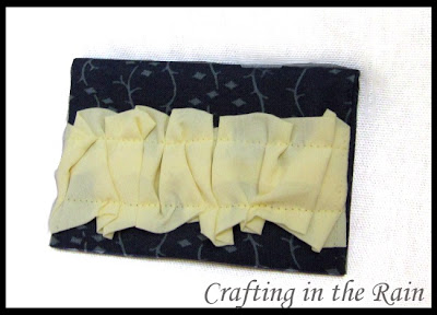 - sew ruffle fabric on–once down the middle for a regular looking ruffle or close to the edges to create a “smashed” ruffle like mine