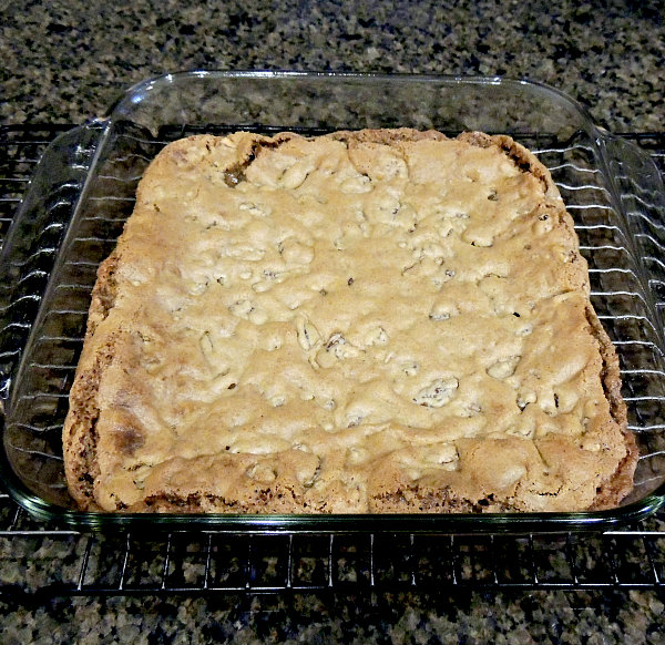 This is a great recipe for anyone who loves nuts and brown sugar. And it’s super easy to make too. The top gets all crispy, the insides are kind of gooey–almost like a pecan pie–but not soupy!