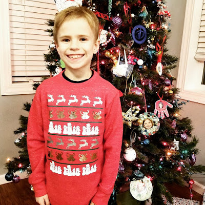 Today’s addition to the 12 Days of Christmas Printables is a set of Christmas sweater print gift tags. I don’t even have a fabulous story to go with these – but I did make this sweater with my son over the weekend, so he could wear it to school today.