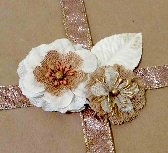 Use premade paper and burlap flowers to make glitter flower gift toppers – perfect for Christmas and other fancy wrapping.