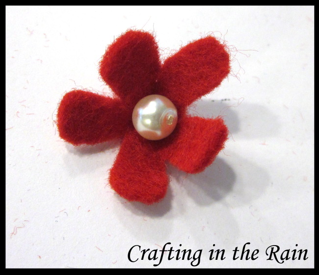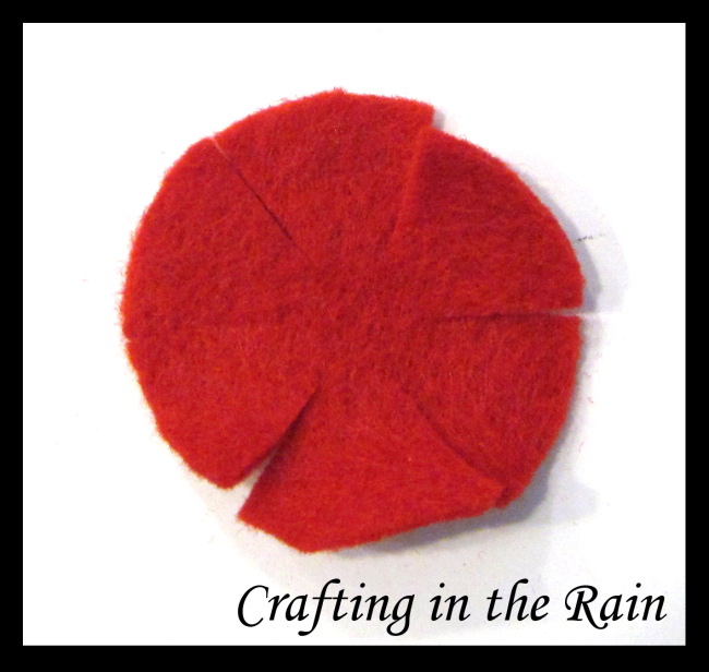 Cut a small flower from the red felt–you can do this anyway you like–here’s how I made mine. Cut 6 slits into a circle of felt.