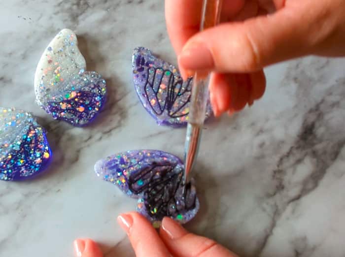 To bring out the detail of the lines on the mold, I brushed some black gel nail polish over this set of wings, and wiped away the excess with a paper towel.
