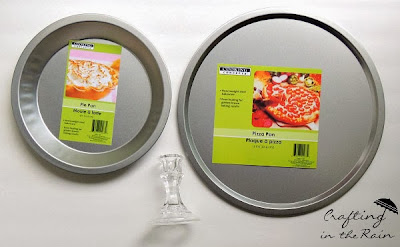 Dollar Store items: Pizza pan, pie plate, candlestick