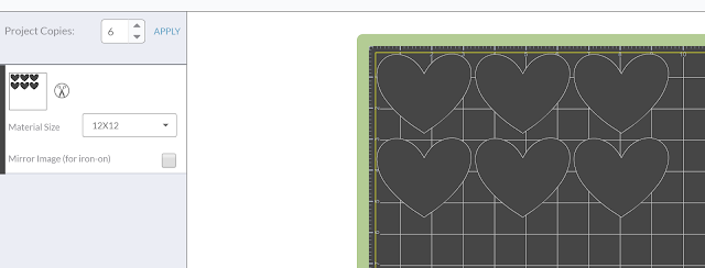Then send the pink iron-on through the machine and change the number of projects to 4 and click apply. Then cut.