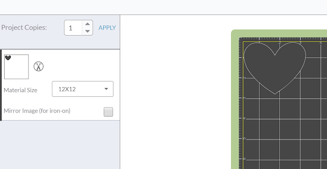 Measure the flag size of the banner so you’ll know how big to make the vinyl hearts. My hearts needed to be 3 inches wide. Open Cricut Design Space and click the “add shape” button and select the heart.