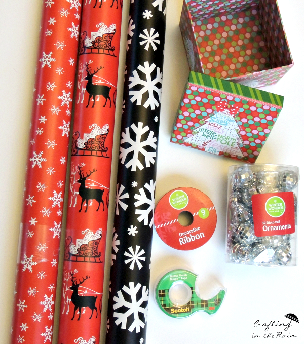 So you saw yesterday how I was already getting excited for Christmas cookies. Today I’m working on some Christmas gifts, and have some easy ideas for both gifts and gift wrapping. First off, we head to Big Lots.