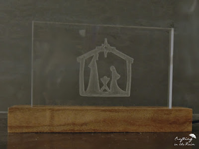 Steve set up the cut in Easel and carved the nativity image, regularly blowing the cut bits of acrylic away with the air compressor.