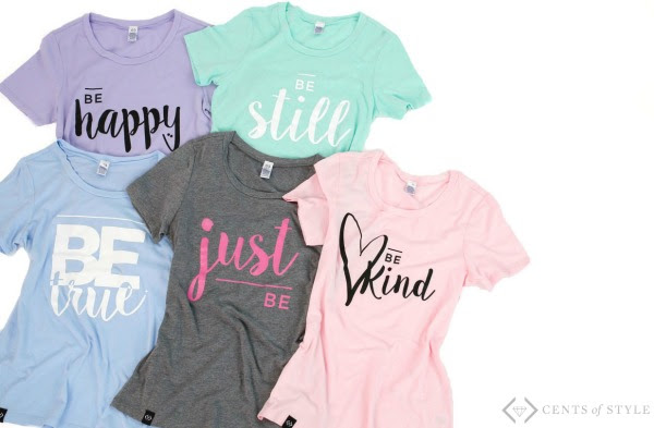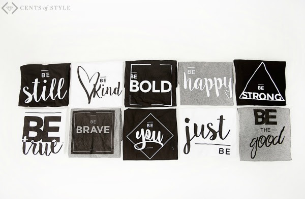 The Cents of Style BE series shirts give reminders of some of the great things you can be: Strong, Bold, Happy, Kind, Still. Which will you choose?