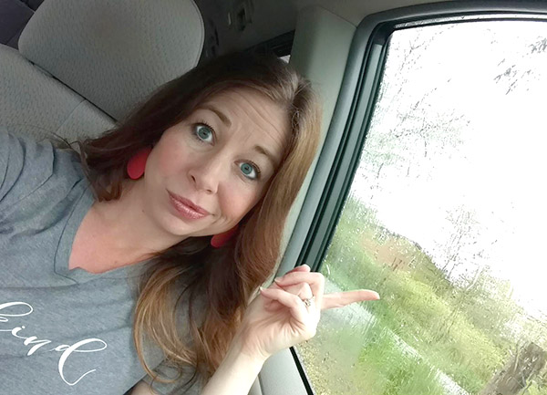At first, I went back to my old reaction – aw man, if only I had left the house sooner? Why did I think I needed another layer of lipstick? How come I didn’t get my homework done faster? Blah, blah. BUT, I stopped myself. I mean, look at my shirt, right? Plus, the way the light difusses through a car window does some pretty nice things to selfies 🙂 So I took a few silly pictures right in the car, while I sat in the parking lot in the rain.