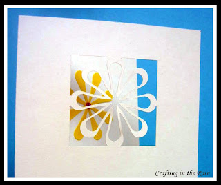 - Arrange paper on your mat and cut. Glue colored flower to the inside of the card–either rotated like mine, or lined up with the front flower