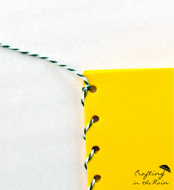 Then start lacing the twine up the side. Tie another knot when you get to the top hole.