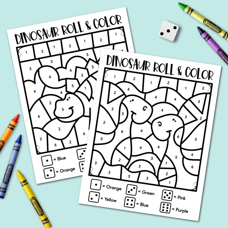 Dinosaur Roll and Color Activity - Kara Creates
