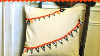 Add cute Halloween banners to a pillow and you don't have to sew anything!