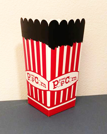 Paint the top of the popcorn box black. If you have spray paint, you could just do the whole box.