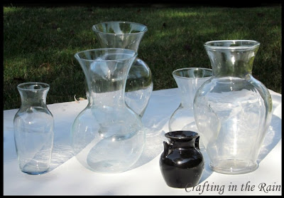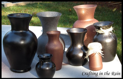 I decorated a bunch of wine and olive oil bottles (don’t worry, I didn’t drink all–or any–of the wine from these) with spray paint and epsom salt. You’ll find a great tutorial there if you want to make some. My added notes: primer works better than cheap white and they definitely need to be sealed with spray acrylic or the salt falls off when you so much as look at them.