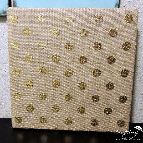 4–Cut a 12 inch square from the foam board using an exacto knife or box cutter. Please be careful of course! Cut fabric with 2 or 3 extra inches on each side. Wrap square with fabric and secure tightly around the back with hot glue. Be careful here too 🙂