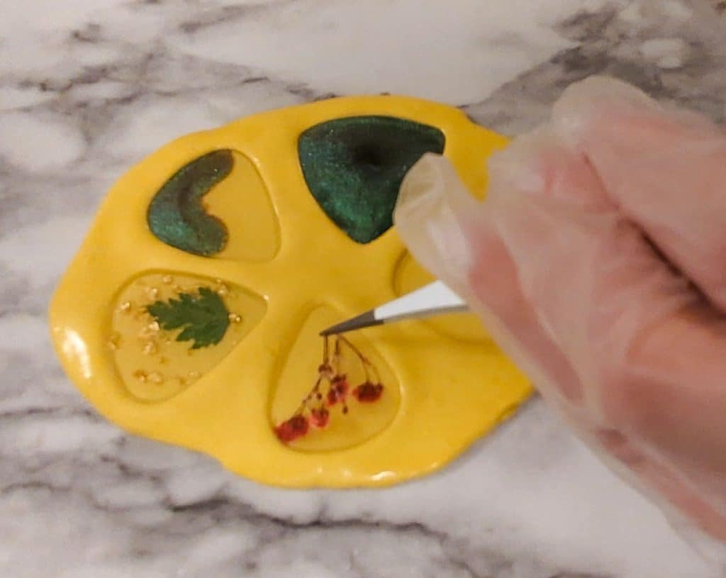 The fun part is to mix and match everything! You can see I did a couple with clear resin and dried flowers, and a couple got gold flakes added. Others got colored with Color Creator mica powder and alcohol ink.