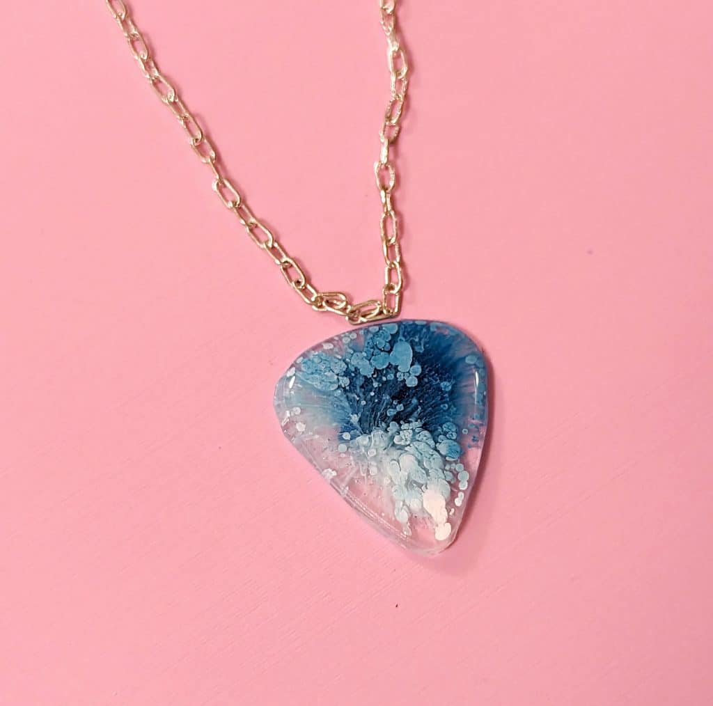 These resin guitar picks can also be turned into a necklace! You can either drill a small hole and add jewelry hardware, or glue a bail to the back. Add a chain and it’s done!