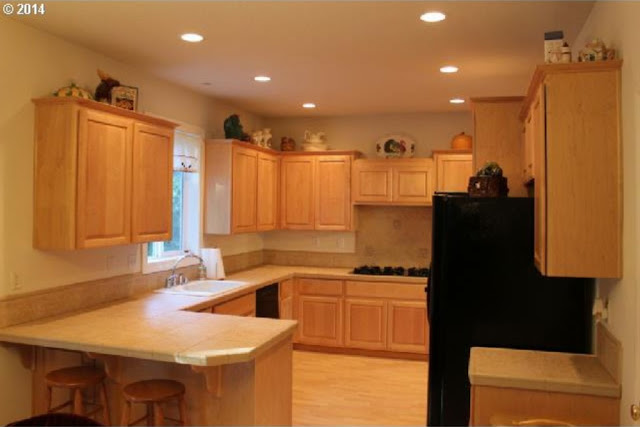 Here’s one of the listing photos so you can see the original kitchen. It was all the same color and it seemed so boring. Keep reading to see all the after pictures!