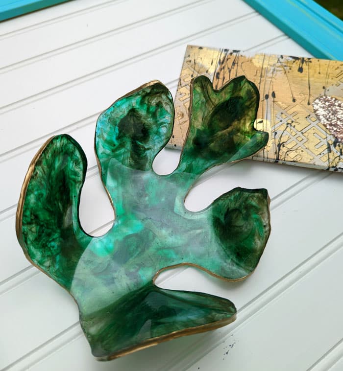 Want a custom decorative piece that feels like fancy nature? I made a custom mold, and then a leaf shaped resin bowl – get the tutorial here.