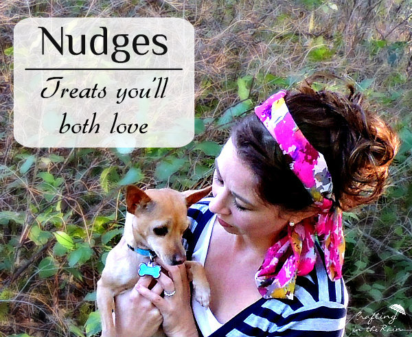 I’m going to tell you a little about how she came to us, and why I love the concept of NudgeThemBack.com. (Head over for lots of ways to show your doggie that you care!) She’s a 2 year old Chihuahua mix that we adopted from the Humane Society last October and she’s been a lot of fun. Several weeks earlier we actually brought home a different dog, but only had him for a week—there were many reasons he wasn’t the right dog for our family.