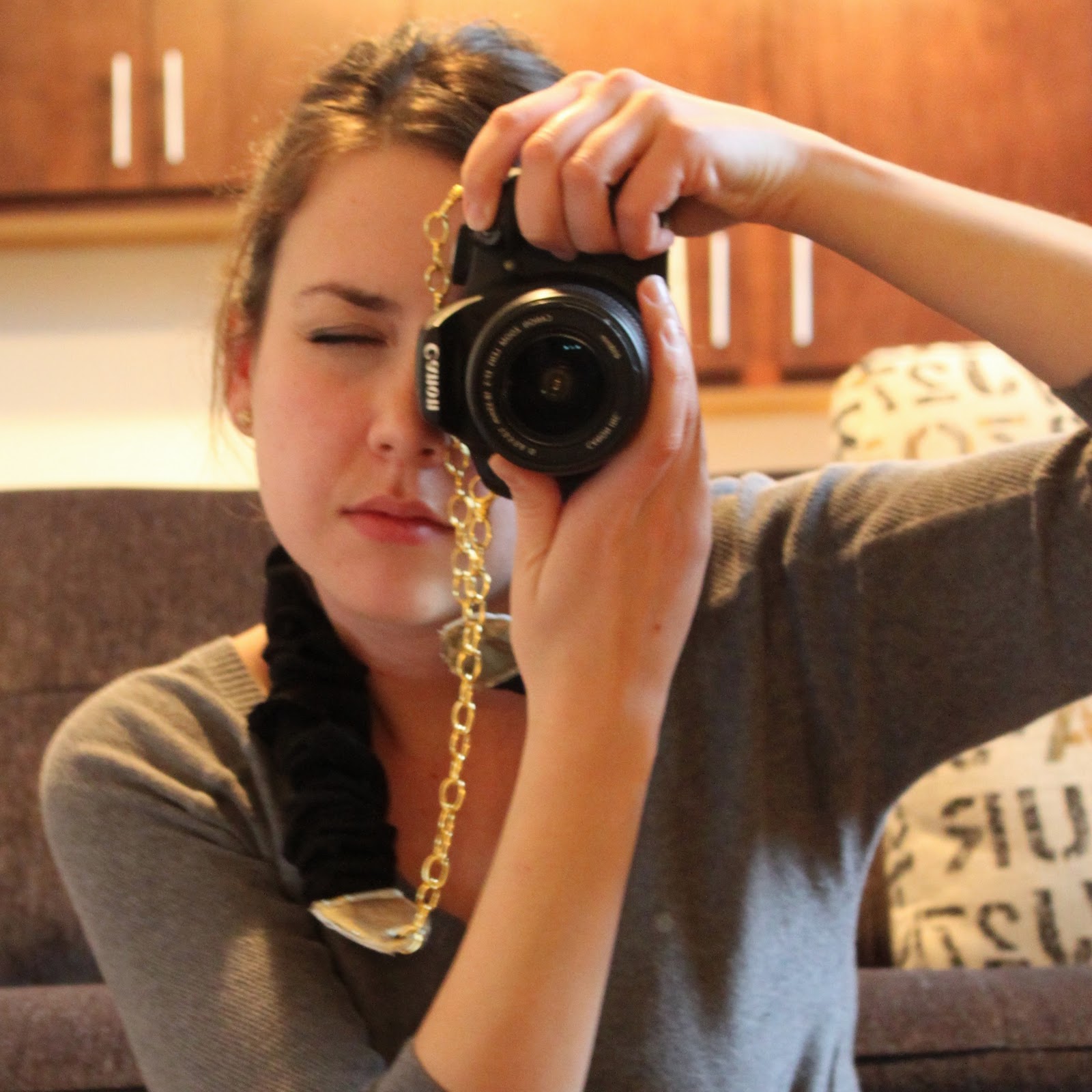 I was so excited about Steph’s Make A Splash Challenge! I love a good challenge. I was even more excited when she said the secret supply was sweaters! I made a cute coffee cozy before using a sweater sleeve and I have been itching to up-cycle another sweater! This time…a camera strap cover for my horribly uncomfortable one I have now! I simply cut a ribbon of the cable sweater that had a pretty design. One end of the ribbon had the finished bottom of the sweater and the other end I simply just folded over to create a hem. Then I used a piece of scrap fabric to act as a binder and glued the edges together! I fed my strap through and wah-lah! A super cute, super comfy camera strap! I am anxious to add a rosette or a pocket for my lens! Thanks Steph for the great challenge!