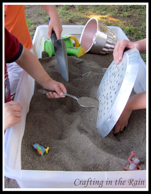 One of my kids’ favorite thing to do at the OMSI is play in the sand box in the Science Playground. I’ve thought they’d love one at home too, but I didn’t really want their pockets full of sand as they came back inside, and I certainly didn’t want to provide the neighborhood cats with a new litter box.
