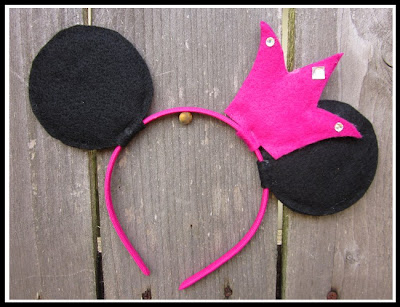 Today’s Disney Week project is Mickey/Minnie ears. I actually found several good tutorials across the internet on how to make these. For my girls though, I opted to add little princess crowns, instead of bows. (There is a great tutorial for ears at The Suburban Mom)