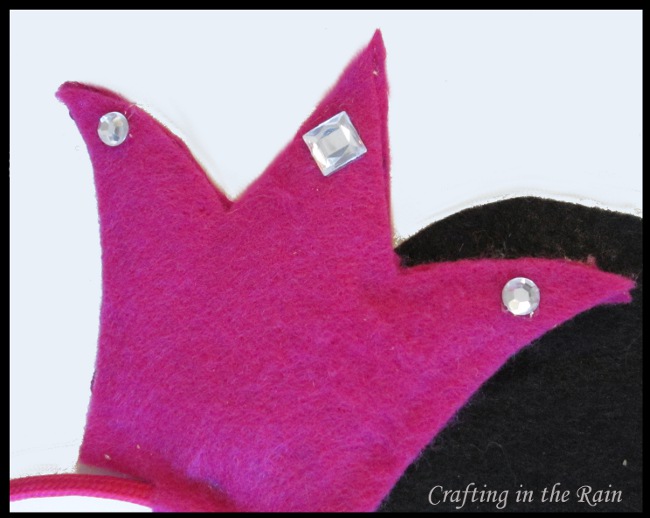 After positioning the crown near one of the ears, I attached it the same way. When the crown was on I glued 3 sparkles to the points.