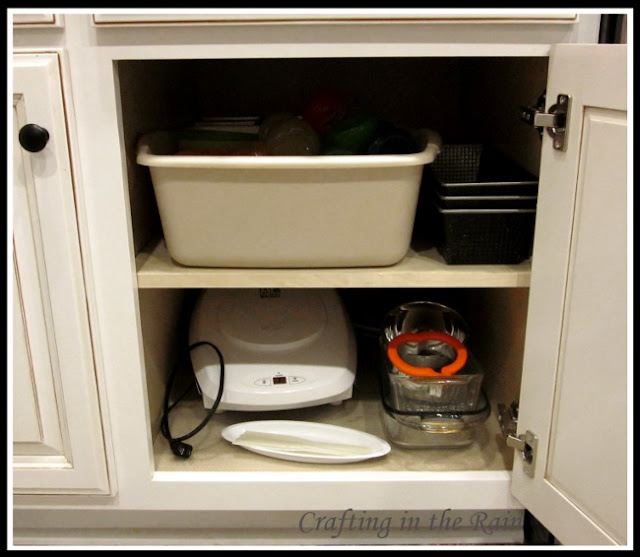 DISHES….All the plastic kids dishes (raise your hand if you have these from IKEA too!) are stored in one plastic bucket in a lower cabinet. The kids can reach them, they don’t spill out all over a shelf, and I can set it right on the counter for easy unloading from the dishwasher.