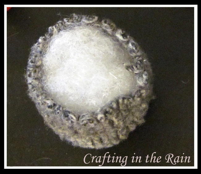 Sew the larger circle around the top, leaving a hole to stuff in more poly fill. Stuff and stitch the hole closed.