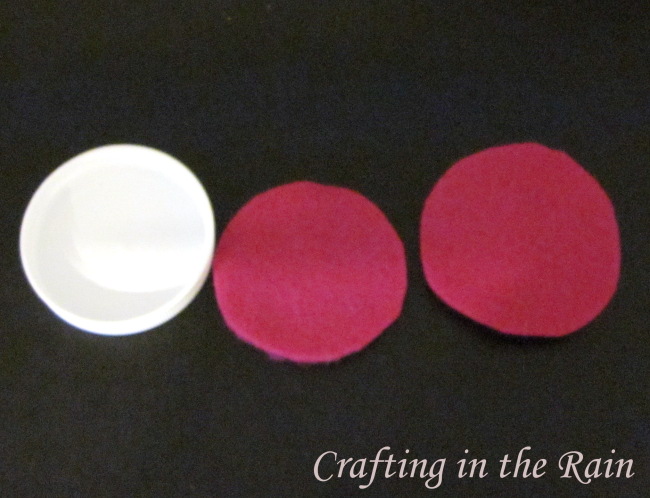 Cut two felt circles–one the size of the lid, one a little bigger.