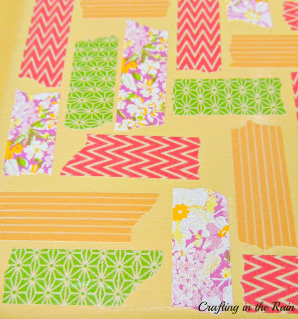 To spruce it up just a little bit more add strips of washi tape around the tray.