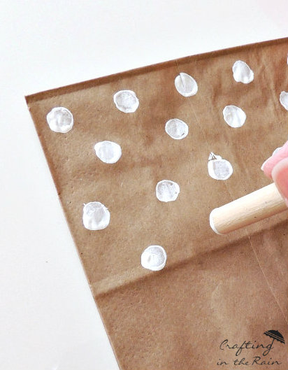 Use the end of a paint brush or pencil eraser to paint dots on the bags.