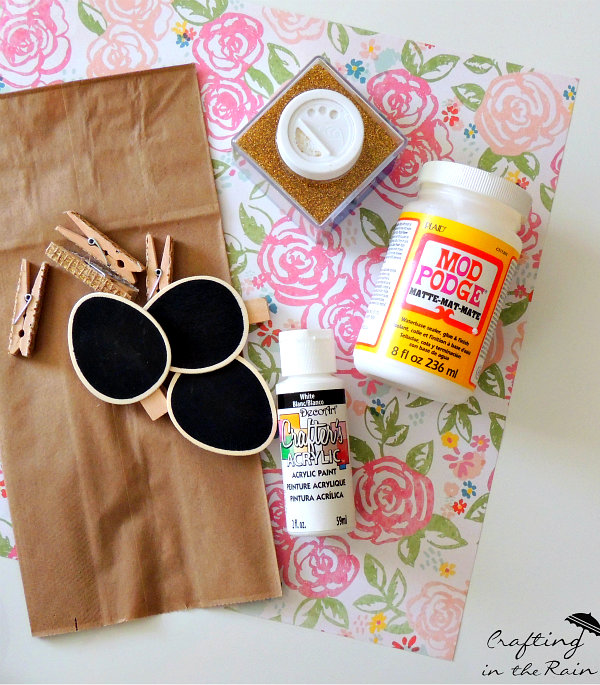 Gold clothes pins and chalkboard egg clips (found at Michaels)