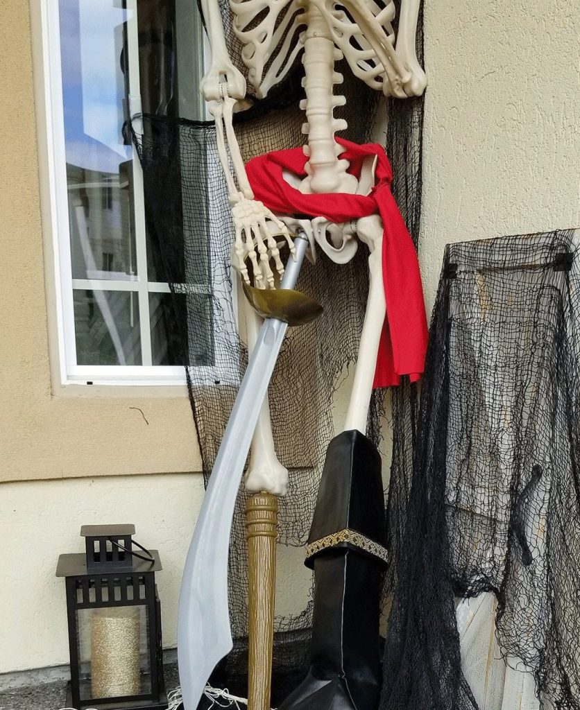 I’m so excited to be on the Oriental Trading Skeleton Squad this year and show off our Pirate Skeleton Halloween porch. I have partnered with Oriental Trading Company on this post and all thoughts and opinions are my own.