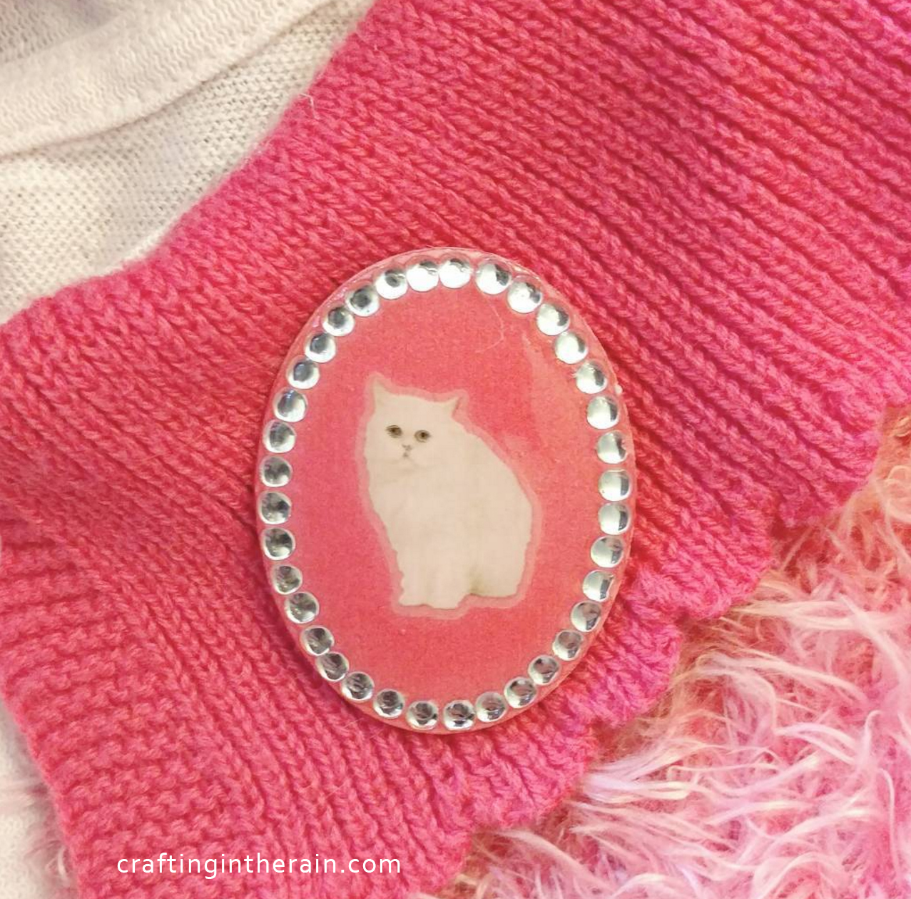 Once the glue sets, your pin is ready to use, either on your Professor Umbridge costume, or any other outfit where you want to declare your love for your feline friends.