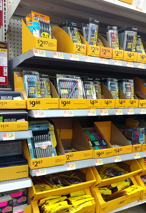 You can find the Pilot G2 10-packs (with bonus FriXion pen) in colored or black ink at Walmart, in the back to school section. Look for 4-packs of pens too.