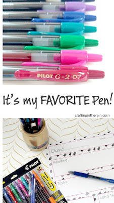 Pilot G2 Pens have been my long-time favorite. Whether I’m making to-do lists, scheduling events on my calendar, or taking notes for my online classes. I’m getting close to graduation, but no quite there yet, so this fall my kids and I will be starting school together again. I wanted a way to keep my pens organized and accessible, and a way to organize my class assignments each week, so I’ve got a printable, and a cute pen cup DIY.