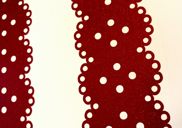 While that’s all drying, cut out the lacy stripes using the red glitter vinyl and the star using the blue. Weed extra vinyl out and apply transfer tape.