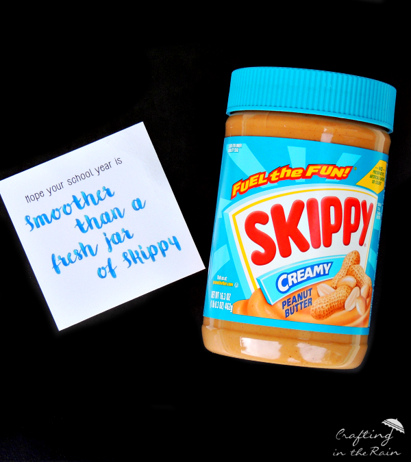 Then all you do is cut the tag and attach to a jar of Skippy peanut butter with a piece of washi tape.