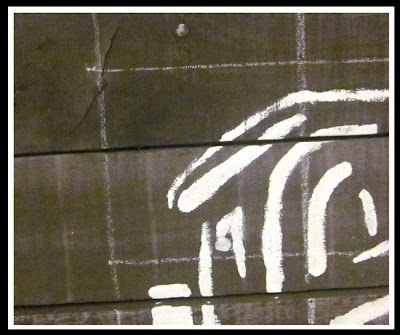 5–Transfer image. This is the scariest part, but after a few squares are done it gets really exciting. I started out drawing with pencil first, but it was really difficult to see on the dark wood of course, and would be nearly impossible to remove later. I decided to just go for it with the paint. Matching up a square on the paper to the same one on the wood, I started painting the design with white paint. It felt like it took forever, and by the time I was done, my neck was killing me. (I get why artists use easels!)