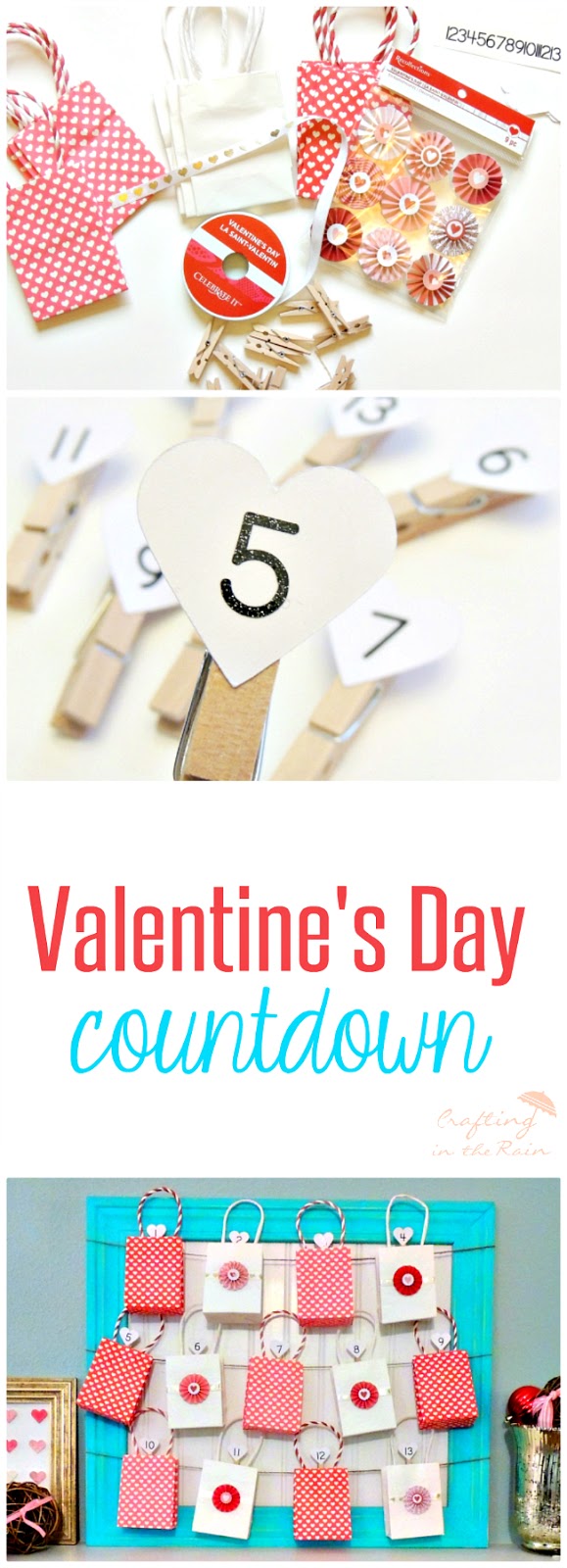 Decorated paper bags from the craft store come together for an easy Valentine countdown.
