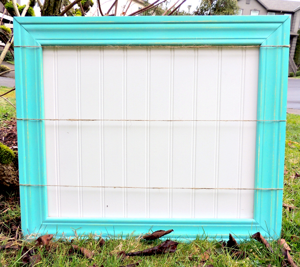 Since I have this big blue frame (see how I made it here), I wanted to use it to display the countdown bags. I taped 2 pieces of twine around the back side. You can hang them from a mantel, or something else, or just stand them on a shelf.