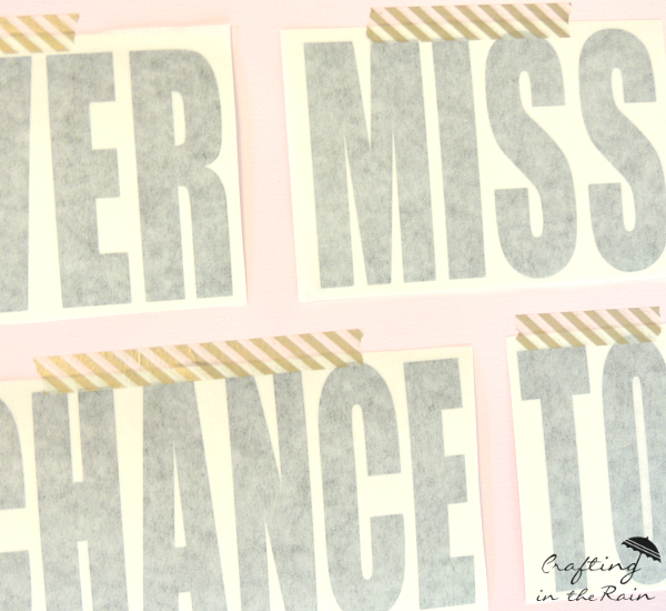 I taped down each piece of vinyl so they were placed right where I wanted them.